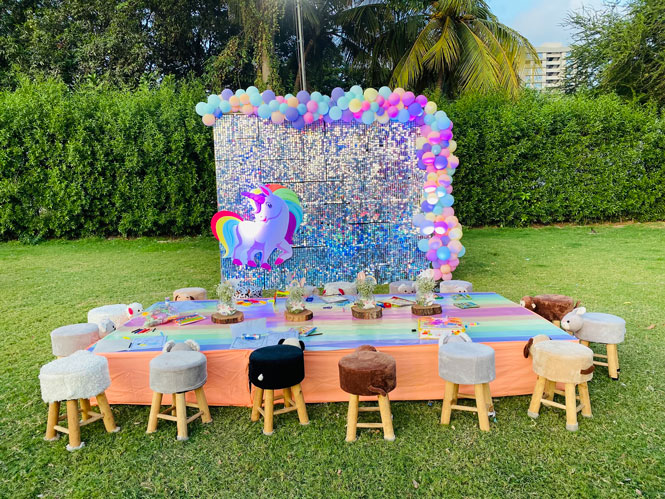 Embark on a magical journey to a realm of enchantment at our unicorn-themed kids' birthday party! Enter a world where shimmering rainbows and sparkling stars light up the sky, and mystical creatures roam free.