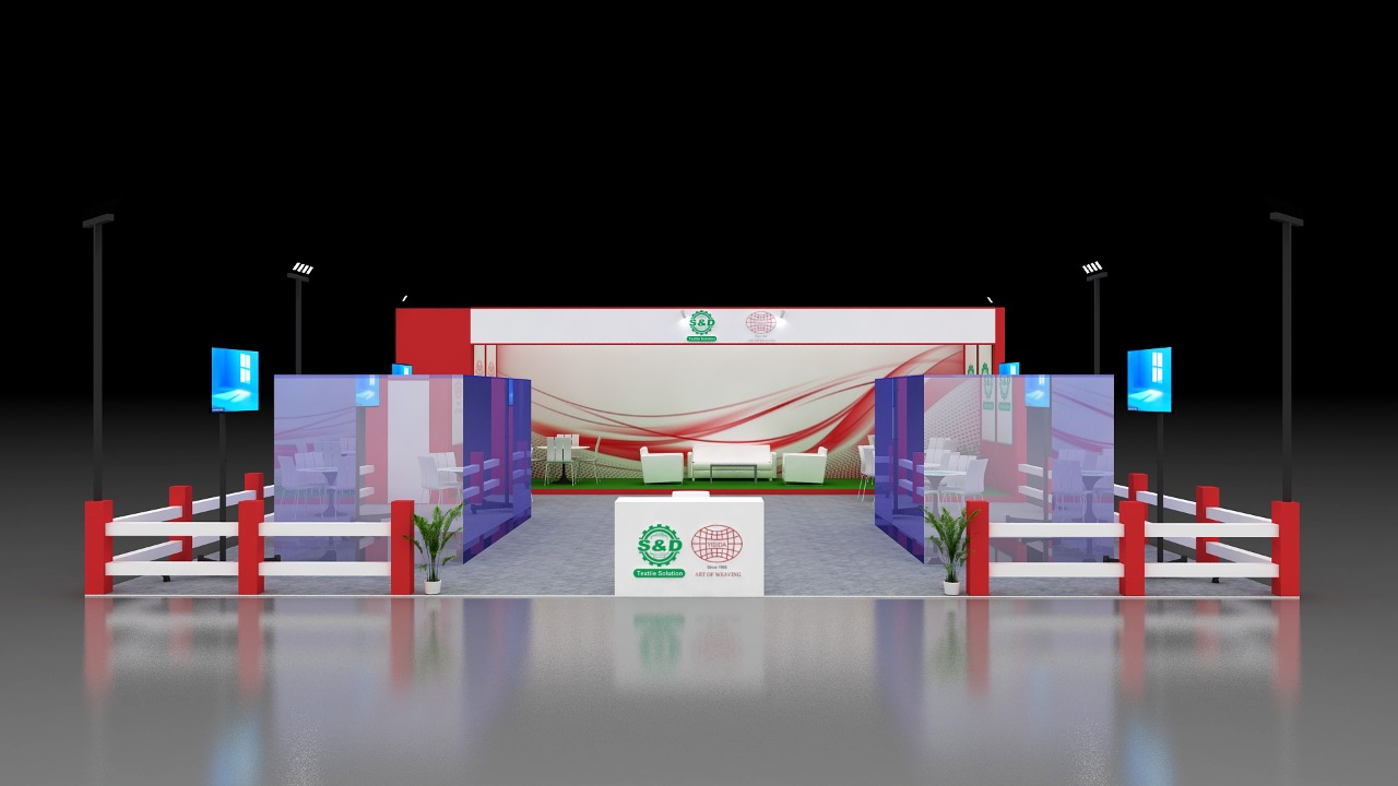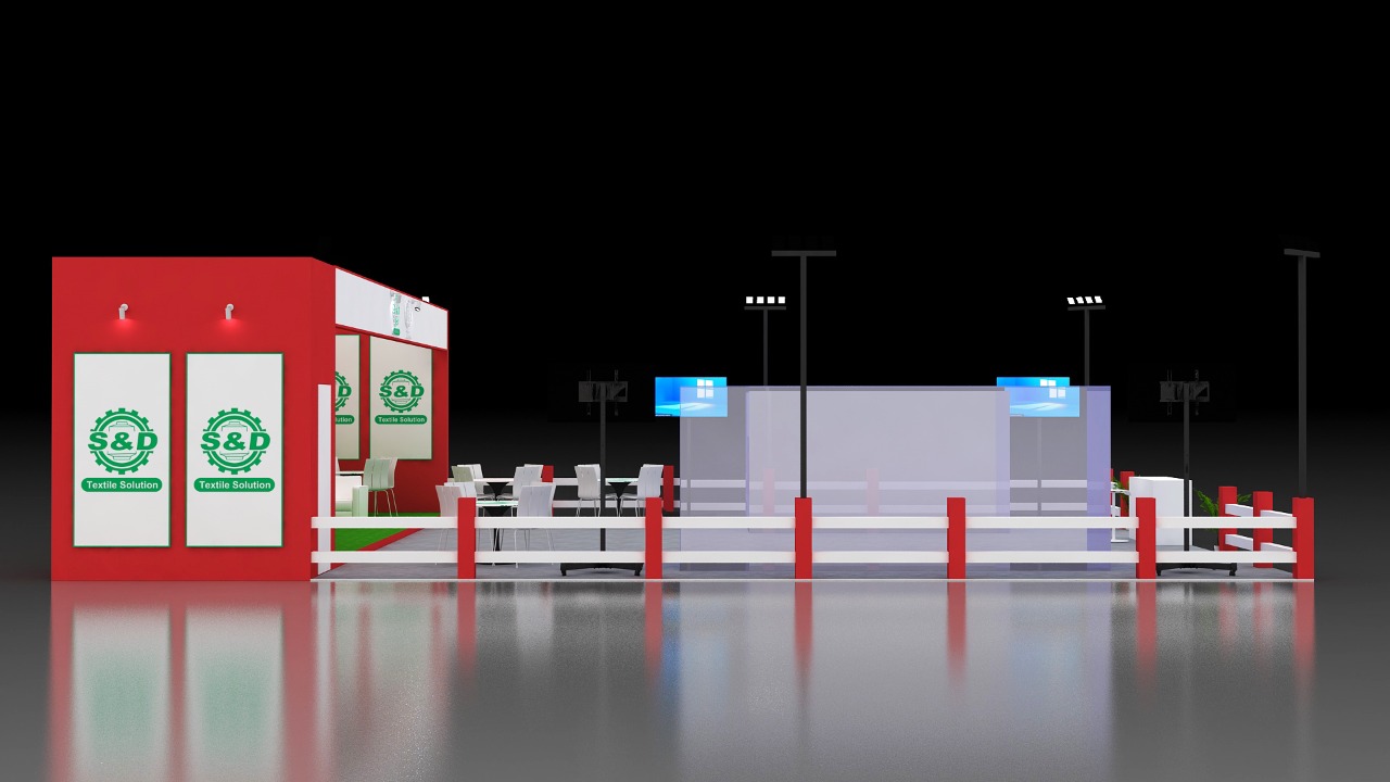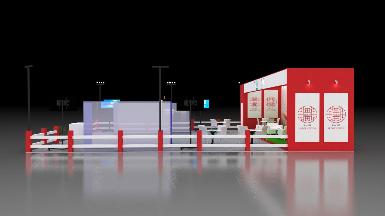 Yisida exhibition stall design. Arrangements of the chair, tables, lights and other furniture make this stall more beautiful.